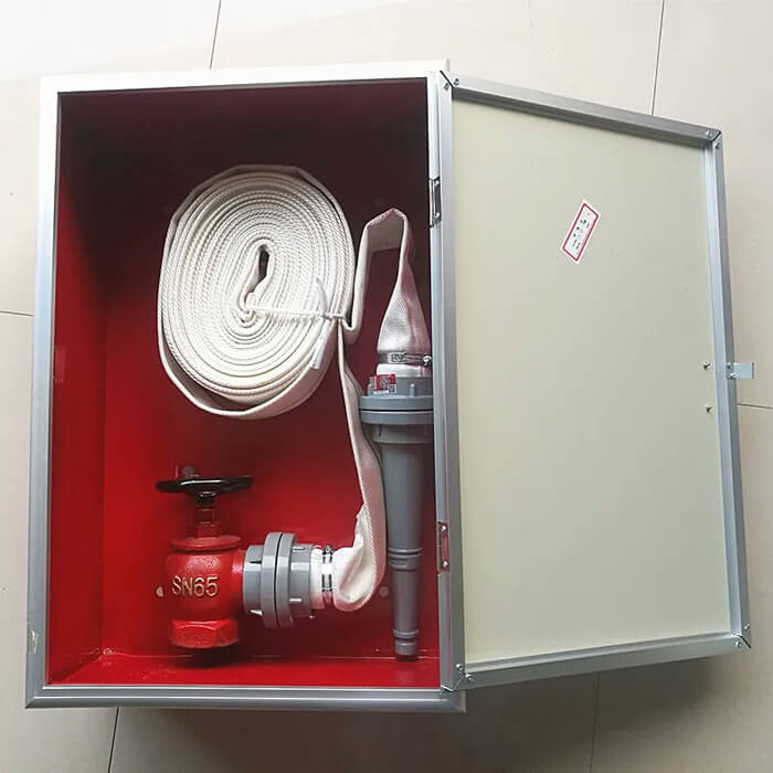 5、安裝消火栓水龍帶,水龍帶與消防水槍和快速接頭綁扎好后,應(yīng)根據(jù)箱內(nèi)構(gòu)造將水龍帶放置;
